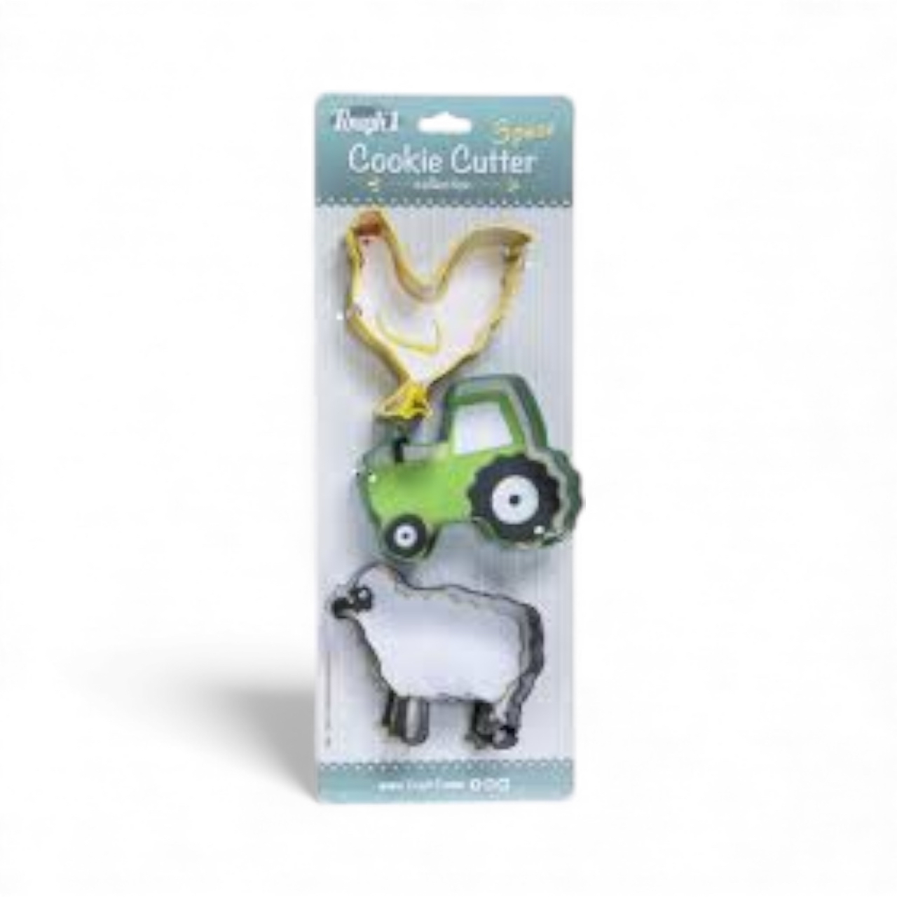 These farm and horse themed cookie cutters create fun cookies for celebrations and gifts! The food-safe metal is powder coated in bright colors to prevent rusting. Reverse side of packaging includes easy-to-follow sugar cookie recipe. Includes 3 unique cutter shapes.