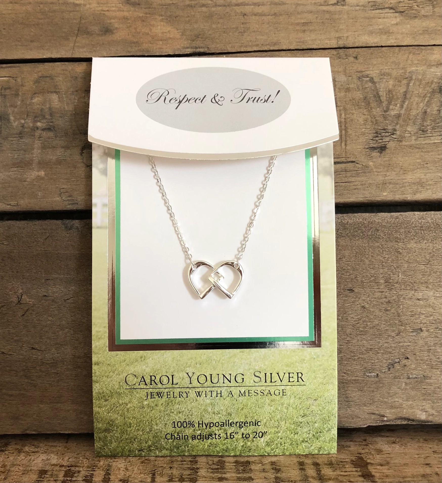 Equine Inspired English stirrup necklace is an elegant and chic choice for the equestrian lover. Petite and lightweight it features both stirrups interlocked, held by a sparkly, link chain. Smooth, Sleek and Classy. The necklace is packaged with a beautiful, card that carries a verse on the back. The tagline of the verse is, “Joined by… mutual respect & trust”. Both Western and English equestrian lovers will appreciate this sleek, classy design. A 4″ extender chain at the back gives this piece great versatility. As always… 100% Hypoallergenic.