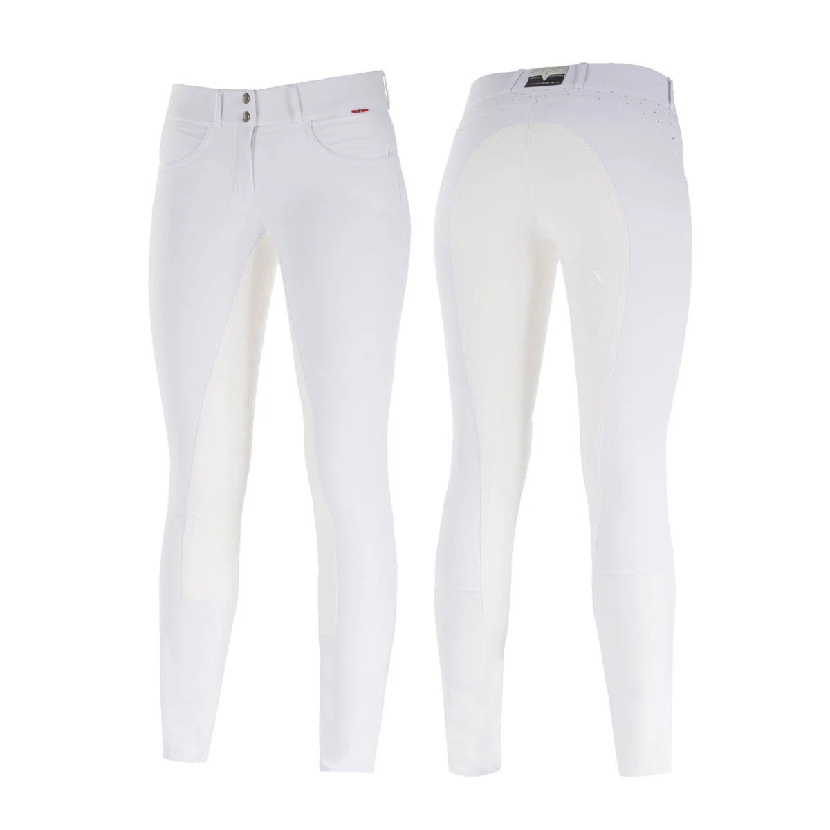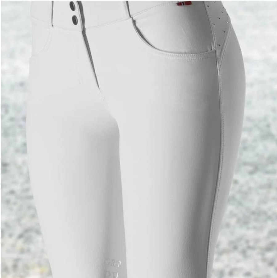 White dressage breeches with crystal detailing.